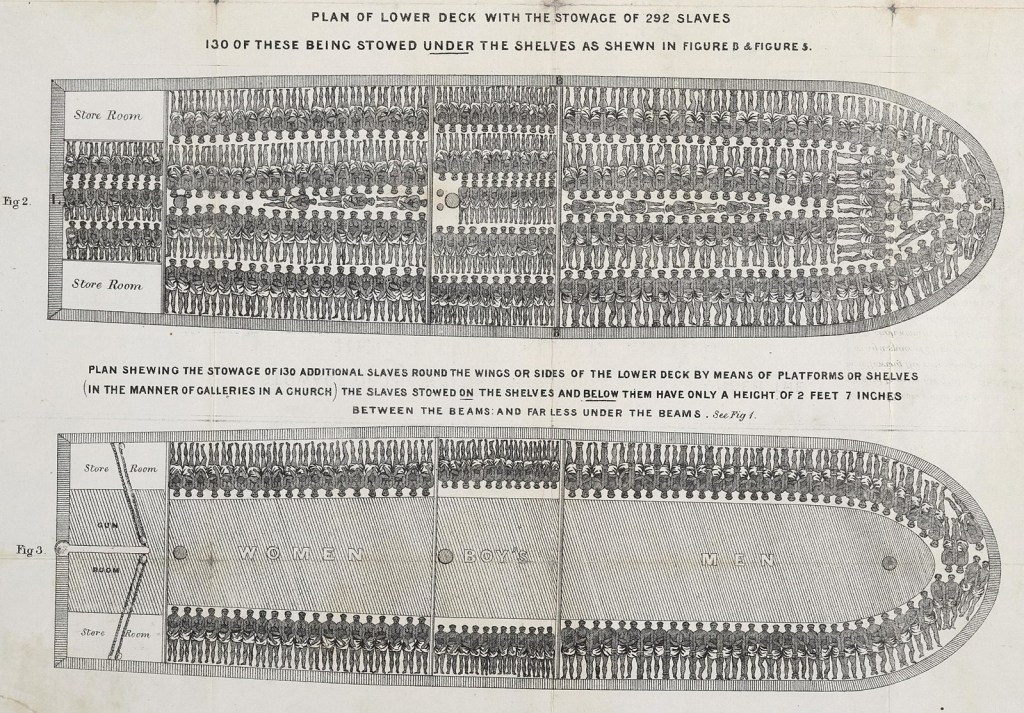 For many years, abolitionists lacked effective arguments against planters’ assertions that the slave trade was essential for Britain’s wealth.[2] William Wilberforce MP outlined a stark economic reality to Parliament: the high level of mortality among seamen and slaves (who were not bought unless quite healthy) during sea voyages.[3] Thomas Clarkson shocked the public with a poster demonstrating one of the causes of so many deaths (between five and 20 per cent) – the appallingly cramped conditions on board Liverpool ship “Brookes”.