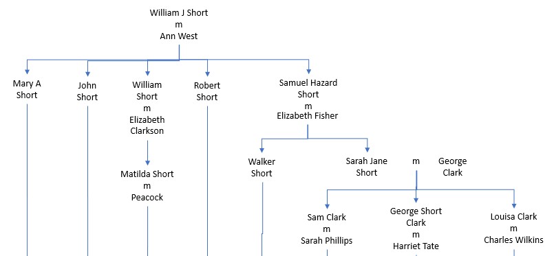 Irene Wilkins‘ mother was Louisa Clark. Louisa’s father was George Clark, born in 1833 in Holland Fen in Lincolnshire, a village north-west of Boston. His mother was Sarah Jane Short, one of eight children born in Bardney to Samuel Hazard (or Haggard) Short and Elizabeth Fisher. Sam’s parents William and Ann née West married in Huttoft near the coast north of Skegness in 1793.