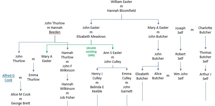 Mary Ann Easter was born in 1825 in Great Glemham Suffolk. On 1 Oct 1846 in Aldeburgh, she married John Thurlow of Butley in a double wedding with her sister Ann Sarah Easter and John Culley, witnessed by siblings John and Emma Easter.
