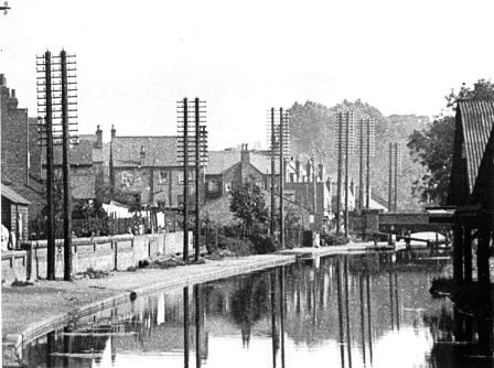 “With high-speed wires above and slow boats below, the canal was a doubly important line of communication. BBC programmes… were transmitted the canal way from London to Daventry, creating some obvious jokes about the use of the word ‘wire-less’. Some years before the 1939-45 war the overhead system was abandoned and… poles were cut down.” (Townsman, May 1971).