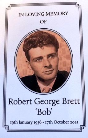 The Brett family lived in Erith in Kent at the time of Bob’s birth in 1936. He was such a beautiful baby that his three older sisters used to fight over who would take him out! His sister Pam asked her Mum ruefully “Why did the only boy in the family have such beautiful blue eyes, lovely wavy hair and curly eyelashes?” She replied, “I don’t know Pam, I can only think he’s the scrapings off the pot!”